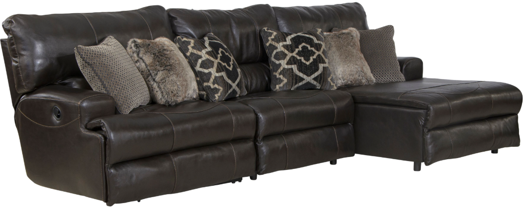 The Catnapper® Como 3-Piece Chocolate Manual Reclining Right Arm Facing Sectional offers comfortable seating with manual reclining functionality. Upholstered in a rich chocolate fabric, this sectional provides spacious seating and a relaxed experience, making it a great addition to any living room for style and comfort.Read More