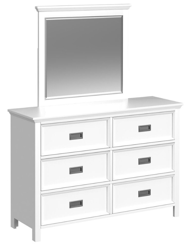 A beveled landscape mirror with a frame perfectly matching the dresser is included for a practical touch. Drawers with skillful dovetailing and ball bearing glides are outfitted with sleek and discreet metal pulls, while the top drawers are fashioned with protective felt lining. For those seeking quality, style, and practicality, the Hampton Kids Dresser with Mirror is the clear choice.