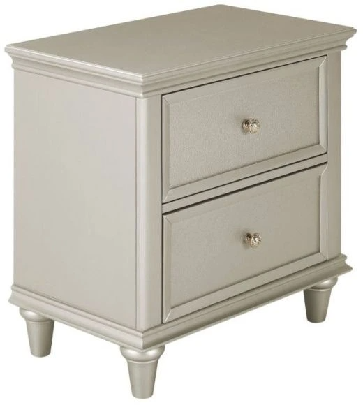 The look of traditional design is updated for the modern traditional home in the Celandine collection. The high polished knob hardware stands out from the silver finish of the nightstand. With each of the aforementioned elements, subtle glamour will be achieved in the design of your elegant bedroom.Read More
