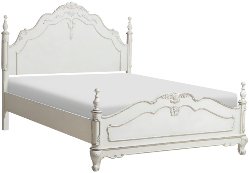 The Cinderella collection is your little child’s dream come true. The Victorian styling incorporates traditional floral motif carving details on the white with gray rub-through finished queen bed that will create the feeling of stepping into a fairy tale. Carved finials top the corner posts of each post further lending to the classic look.Read More