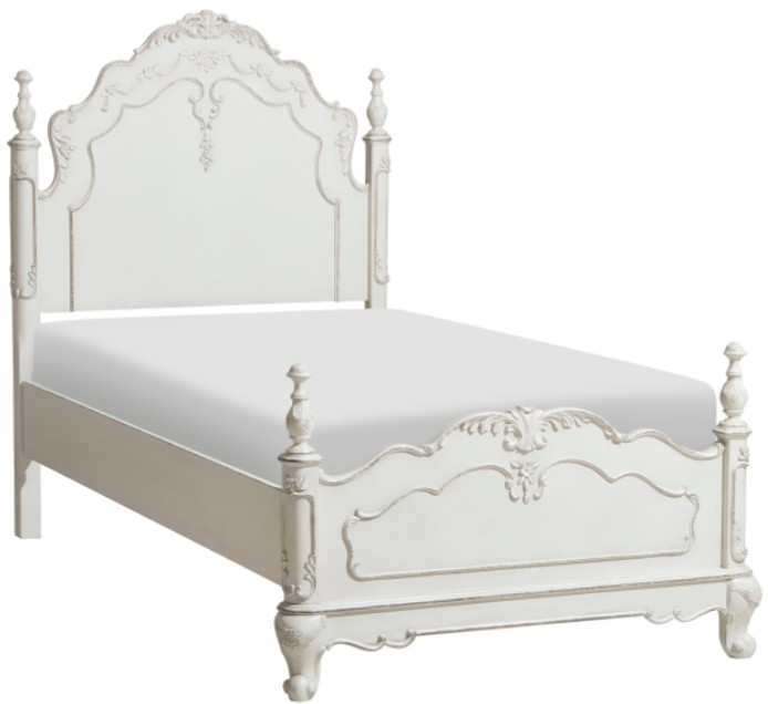 The Cinderella collection is your little child’s dream come true. The Victorian styling incorporates traditional floral motif carving details on the white with gray rub-through finished queen bed that will create the feeling of stepping into a fairy tale. Carved finials top the corner posts of each post further lending to the classic look.Read More