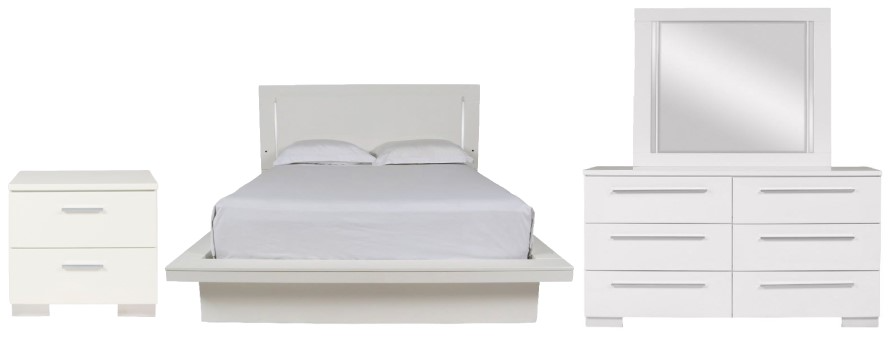 Set includes bed, nightstand, dresser and mirror