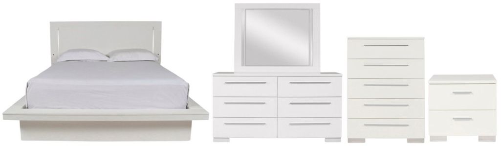 Elevate your bedroom to a new level of luxury with the Sapphire modern bedroom set in high gloss white. This exquisite ensemble features a lighted panel bed, dresser, mirror, chest, and nightstand, all meticulously crafted from premium manufactured wood with a flawlessly smooth surface.Read More