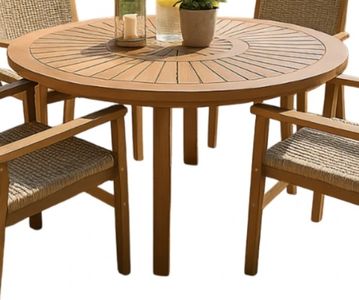 Crafted from FSC-Certified acacia solid wood, the Sunray 50" round dining table combines strength, durability, and natural beauty. A clear protective finish highlights the wood grain while enhancing resistance to the elements. The slatted sunburst tabletop adds refined style and promotes water drainage.Read More