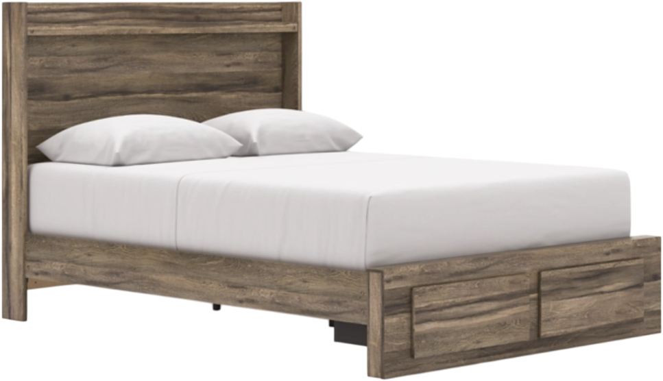 Includes panel headboard, storage footboard, roll slats and platform rails