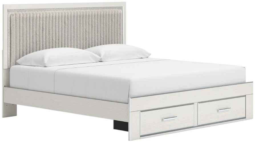 If glitz and glam are your jam, you’re gonna love this king upholstered panel storage bed. Gleaming glitter and dazzling chrome-tone touches are paired with tufted gray faux fur for a stunning pop of pizzazz. And the spacious storage drawers, with large-scale handles and faceted details, don’t disappoint.Read More