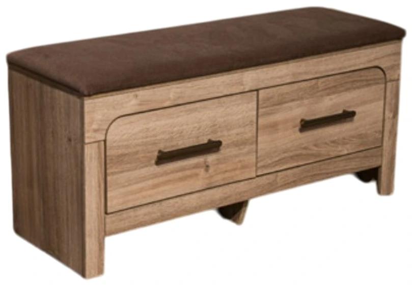 The natural wood tones and clean lines of this storage bench echo your easygoing style sensibilities. With a warm finish and replicated oak grain, its carefree character lightens up your bedroom. Curved inner corner details soften the look, while sleek bronze-tone hardware modernizes the feel. It’s a chic and functional addition to the foot of a bed.Read More