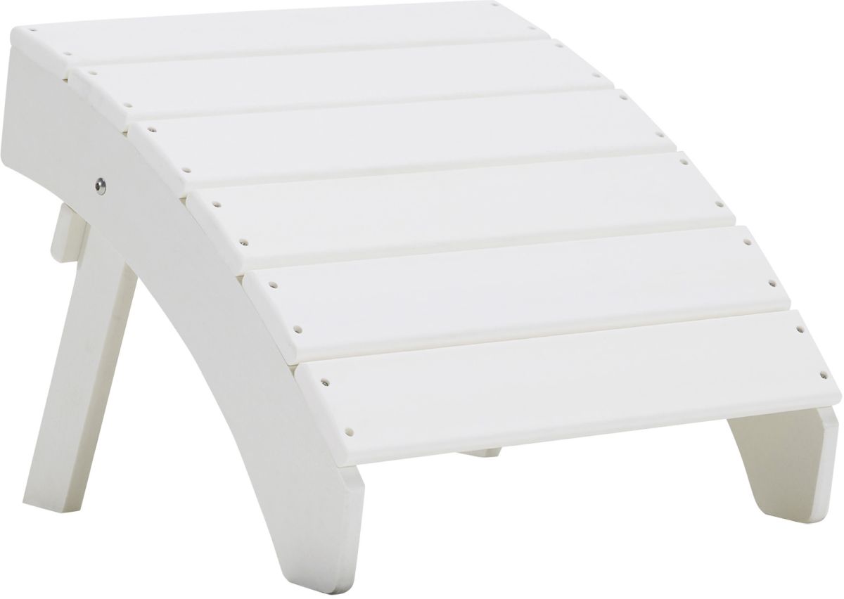 Add cottage-quaint charm to your outdoor oasis with this ottoman in white. Made of MEGA TUFF™ high-density polyethylene material, it’s sure to weather the seasons beautifully. The ottoman’s slatted styling with sloped shaping provides exceptional form and function.Read More